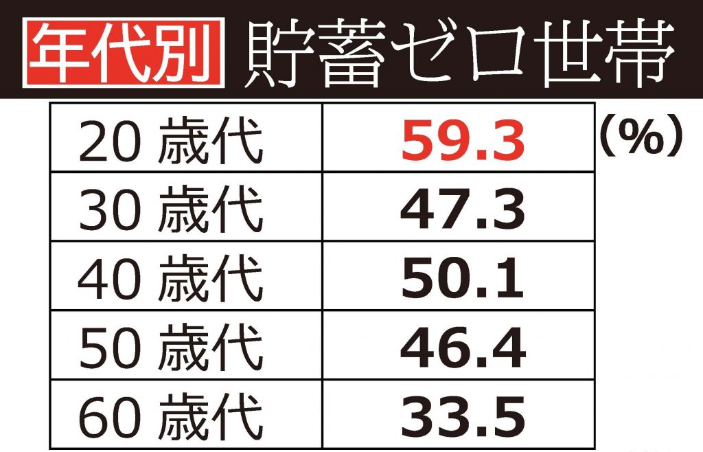 20代、30代、40代の無貯蓄世帯も広がっています。