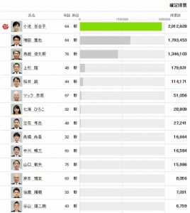 東京都知事選挙の結果 小池候補291万2...